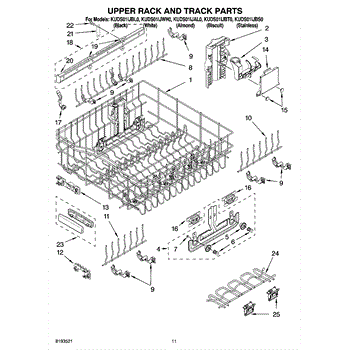 This genuine replacement part is an upper dishrack. The upper dishrack is the top shelf of a dishwasher that holds plates, bowls, and utensils. Over time through continuous use, this upper rack may become damaged, making it difficult to secure dishes during a wash cycle. If the dishrack is visibly damaged or no longer opening and shutting properly, it will need to be replaced. Thankfully, replacing this dishrack is a relatively simple process.To remove the old dishrack, simply pull it out and lift the wheels from its track. Set it off the side, and lift the new dishrack. Slide it into its track and make sure it is locked in. If it is gliding in and out smoothly, it has been installed properly.This genuine replacement part is compatible with Whirlpool, Maytag, KitchenAid, Jenn-Air, Amana, Magic Chef, Admiral, Norge, Roper, and Sears/Kenmore brand dishwashers.