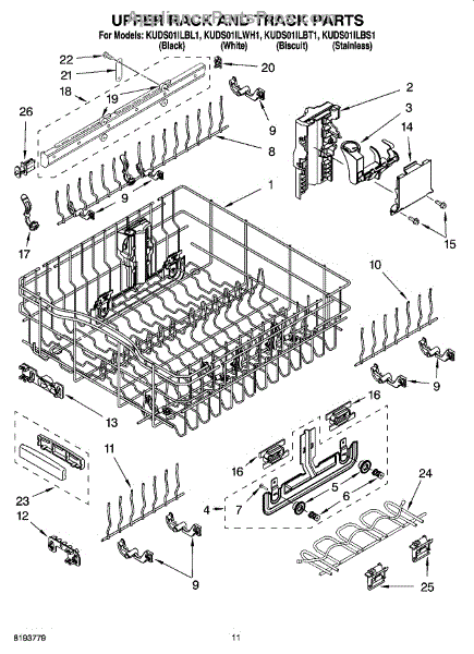 This genuine replacement part is an upper dishrack. The upper dishrack is the top shelf of a dishwasher that holds plates, bowls, and utensils. Over time through continuous use, this upper rack may become damaged, making it difficult to secure dishes during a wash cycle. If the dishrack is visibly damaged or no longer opening and shutting properly, it will need to be replaced. Thankfully, replacing this dishrack is a relatively simple process.To remove the old dishrack, simply pull it out and lift the wheels from its track. Set it off the side, and lift the new dishrack. Slide it into its track and make sure it is locked in. If it is gliding in and out smoothly, it has been installed properly.This genuine replacement part is compatible with Whirlpool, Maytag, KitchenAid, Jenn-Air, Amana, Magic Chef, Admiral, Norge, Roper, and Sears/Kenmore brand dishwashers.