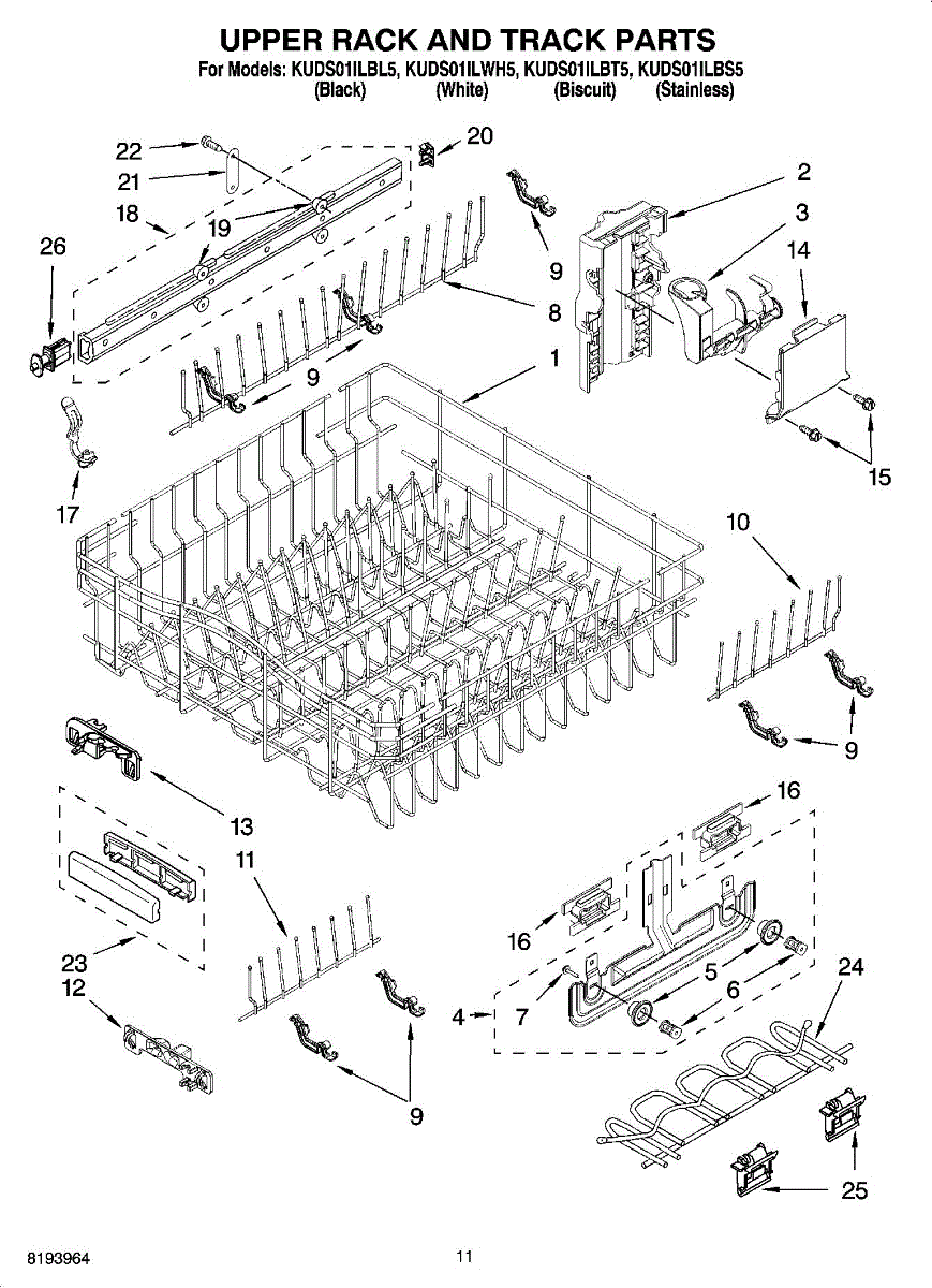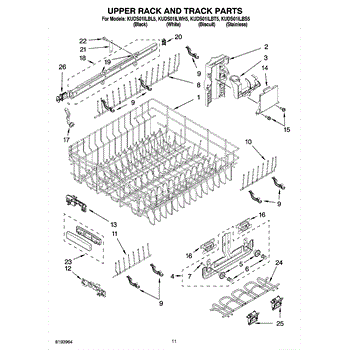 Parts for Kitchenaid KUDS01ILBS5: 09 - Upper Rack And Track Parts