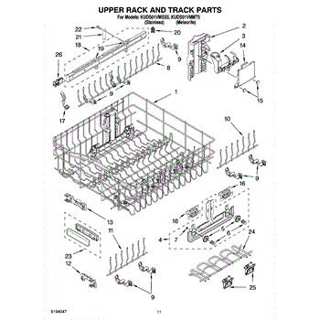 Replace your dishwasher's upper dishrack if it's cracked, rusted, or has damaged coating. This top shelf holds plates and bowls securely during wash cycles.