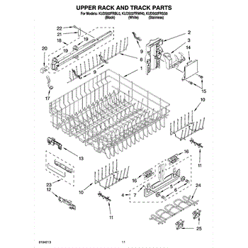 Parts for Kitchenaid KUDS02FRBL0: 09 - Upper Rack And Track Parts