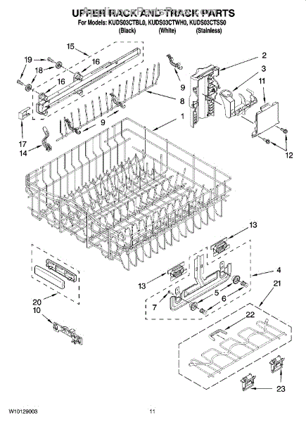 The Upper Dish Rack is an OEM replacement part for Whirlpool dishwashers. Located on the upper level inside the tub, it provides an area for washing smaller dishes, utensils, and glasses.