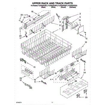 Parts for Kitchenaid KUDS03FSSS3: 09 - Upper Rack And Track Parts