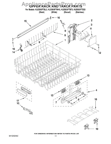 Parts for Kitchenaid KUDS03FTBL3: 09 - Upper Rack And Track Parts