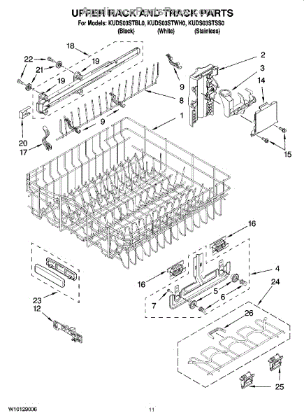 The Upper Dish Rack is an OEM replacement part for Whirlpool dishwashers. Located on the upper level inside the tub, it provides an area for washing smaller dishes, utensils, and glasses.