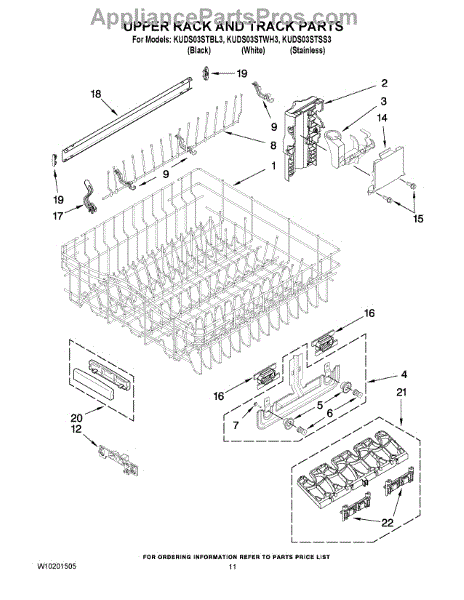 Upper dish rack assembly for dishwashers. Holds glasses, cups, and small items on the top level. Replace if cracked, warped, rusted, or deteriorating.