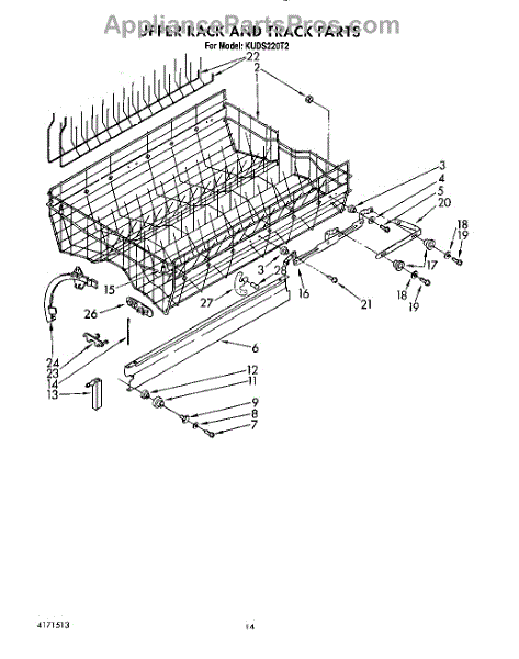 Parts for Kitchenaid KUDS220T2: 11 - Upper Rack And Track Parts