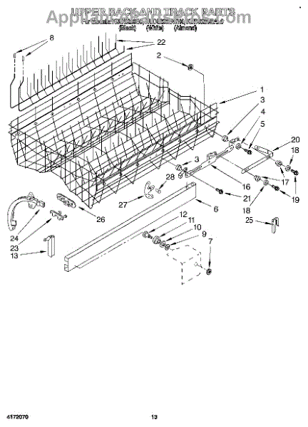 This retaining clip secures the dishwasher's upper rack adjustable arm so the arm stays in place during loading and cycles. Replacing a broken or worn clip helps restore proper rack positioning and prevents the arm from detaching. What it does