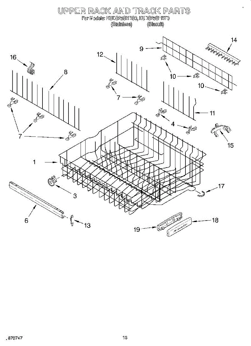 Upper dishrack assembly for dishwashers. Slides on tracks to hold dishes on the top shelf. Replace if cracked, rusted, broken tines, or no longer stable.