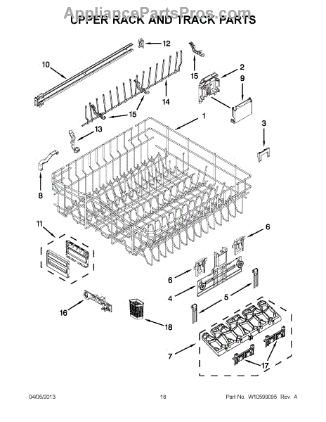 Parts for Kitchenaid KUDS30FXPA9: 09 - Upper Rack And Track Parts