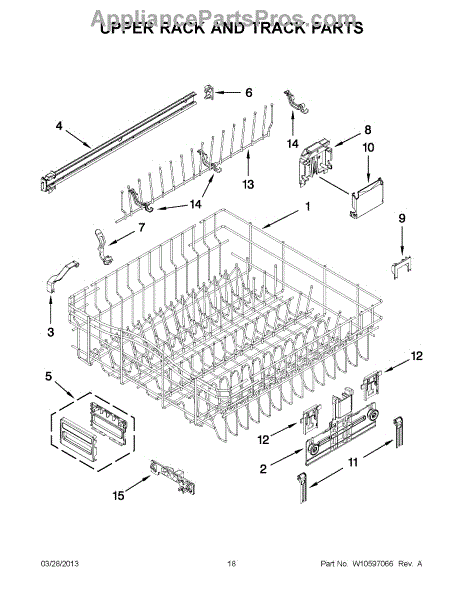 Parts for Kitchenaid KUDS30IXWH9: 09 - Upper Rack And Track Parts