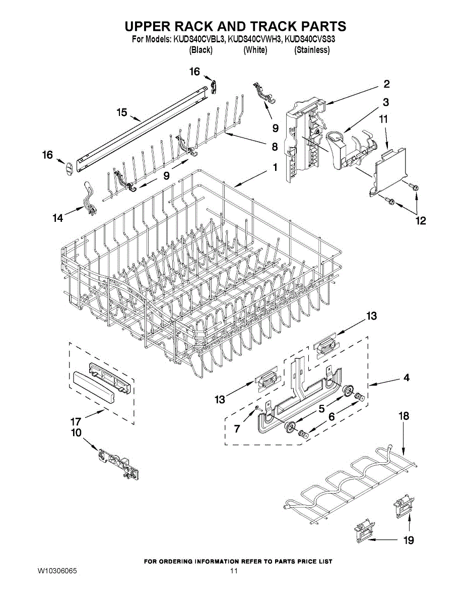 Parts for Kitchenaid KUDS40CVBL3: 09 - Upper Rack And Track Parts
