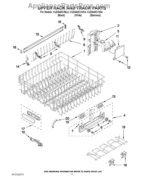 Parts for Kitchenaid KUDS40CVBL4: 09 - Upper Rack And Track Parts