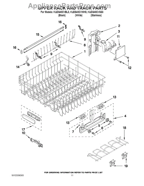 Parts for Kitchenaid KUDS40CVWH3: 09 - Upper Rack And Track Parts