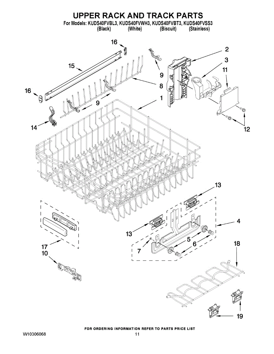 Parts for Kitchenaid KUDS40FVBT3: 09 - Upper Rack And Track Parts