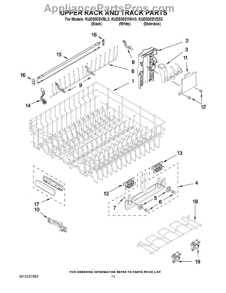Parts for Kitchenaid KUDS50SVBL3: 09 - Upper Rack And Track Parts