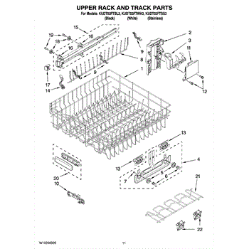 This upper dishrack track mounts to the dishwasher tub wall and provides a smooth glide path for the rack rollers. Replacing a damaged track restores easy in-and-out movement and helps keep the upper rack aligned and secure.