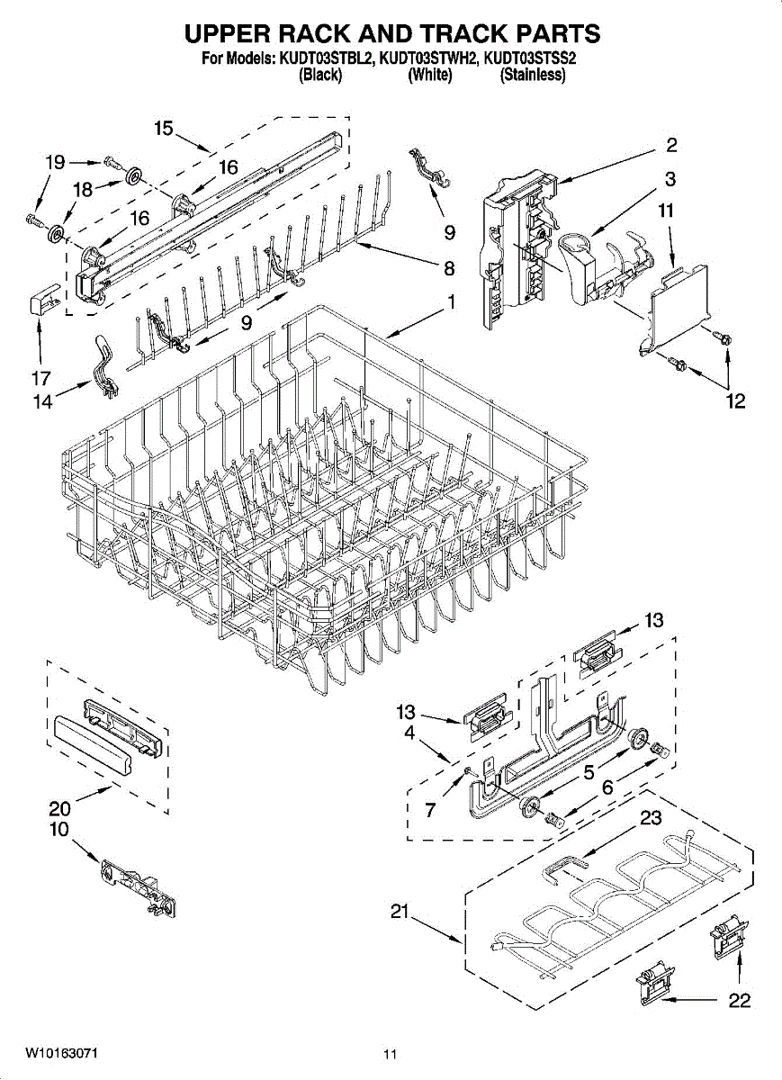 Parts for Kitchenaid KUDT03STBL2: 09 - Upper Rack And Track Parts