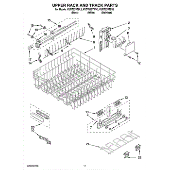 The Upper Dishrack is an OEM part for Whirlpool dishwashers. This dishrack is designed to hold dishes, glasses, and other items securely in the upper part of the dishwasher during the wash cycle, allowing for effective cleaning and efficient use of space.