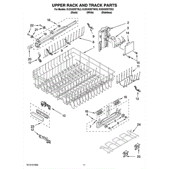 This genuine replacement part is an upper dishrack. The upper dishrack is the top shelf of a dishwasher that holds plates, bowls, and utensils. Over time through continuous use, this upper rack may become damaged, making it difficult to secure dishes during a wash cycle. If the dishrack is visibly damaged or no longer opening and shutting properly, it will need to be replaced. Thankfully, replacing this dishrack is a relatively simple process.To remove the old dishrack, simply pull it out and lift the wheels from its track. Set it off the side, and lift the new dishrack. Slide it into its track and make sure it is locked in. If it is gliding in and out smoothly, it has been installed properly.This genuine replacement part is compatible with Whirlpool, Maytag, KitchenAid, Jenn-Air, Amana, Magic Chef, Admiral, Norge, Roper, and Sears/Kenmore brand dishwashers.