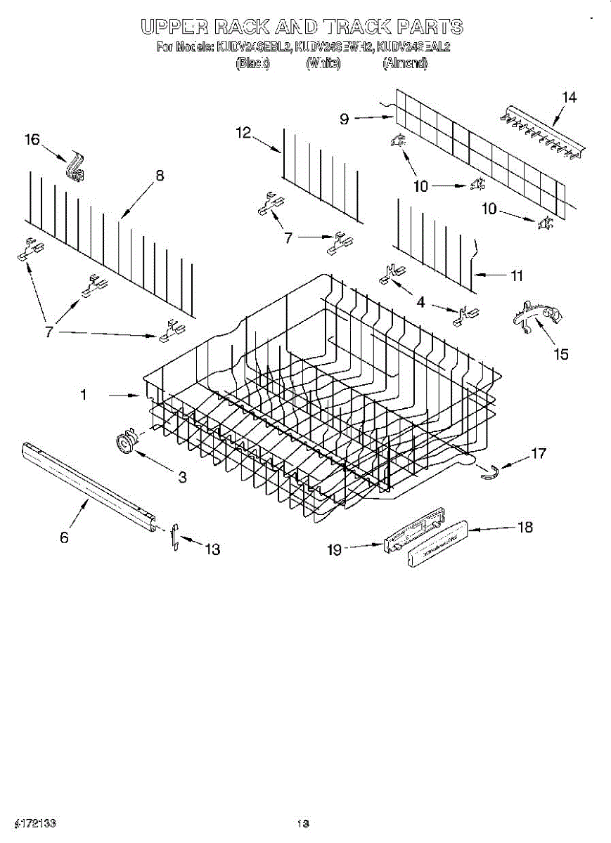 Parts for Kitchenaid KUDV24SEAL2: 10 - Upper Rack And Track Parts
