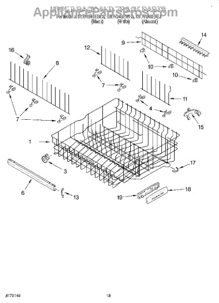 This genuine OEM part is a refrigerator upper dishrack. The upper dishrack is the tray on which dishes are placed on the top shelf of a dishwasher. If the dishrack is no longer sliding on its tracks, or is not staying in place during the wash cycle, it might need to be replaced. Luckily this is a very simple repair.To replace the upper dishrack, simply pull out the old dish rack and lift it up out of its tracks. Once removed from the dishwasher, take the new dishrack and gently slide it into place. Make sure it is placed correctly and that it is running smoothly on its tracks.This replacement part is sold individually and is compatible with Whirlpool, Maytag, KitchenAid, Jenn-Air, Amana, Magic Chef, Admiral, Norge, Roper, and Sears/Kenmore brand dishwashers.