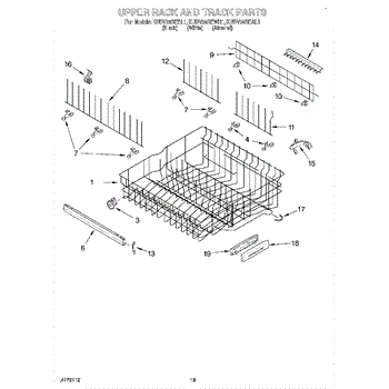 Parts for Kitchenaid KUDV24SEBL1: 10 - Upper Rack And Track Parts