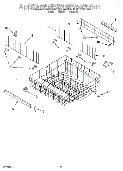 This genuine OEM part is a refrigerator upper dishrack. The upper dishrack is the tray on which dishes are placed on the top shelf of a dishwasher. If the dishrack is no longer sliding on its tracks, or is not staying in place during the wash cycle, it might need to be replaced. Luckily this is a very simple repair.To replace the upper dishrack, simply pull out the old dish rack and lift it up out of its tracks. Once removed from the dishwasher, take the new dishrack and gently slide it into place. Make sure it is placed correctly and that it is running smoothly on its tracks.This replacement part is sold individually and is compatible with Whirlpool, Maytag, KitchenAid, Jenn-Air, Amana, Magic Chef, Admiral, Norge, Roper, and Sears/Kenmore brand dishwashers.