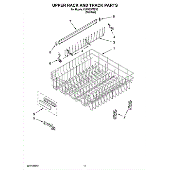 The Upper Dish Rack is an OEM replacement part for Whirlpool dishwashers. Located on the upper level inside the tub, it provides an area for washing smaller dishes, utensils, and glasses.