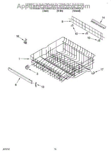Parts for Kitchenaid KUDY24SEWH5: 10 - Upper Rack And Track Parts