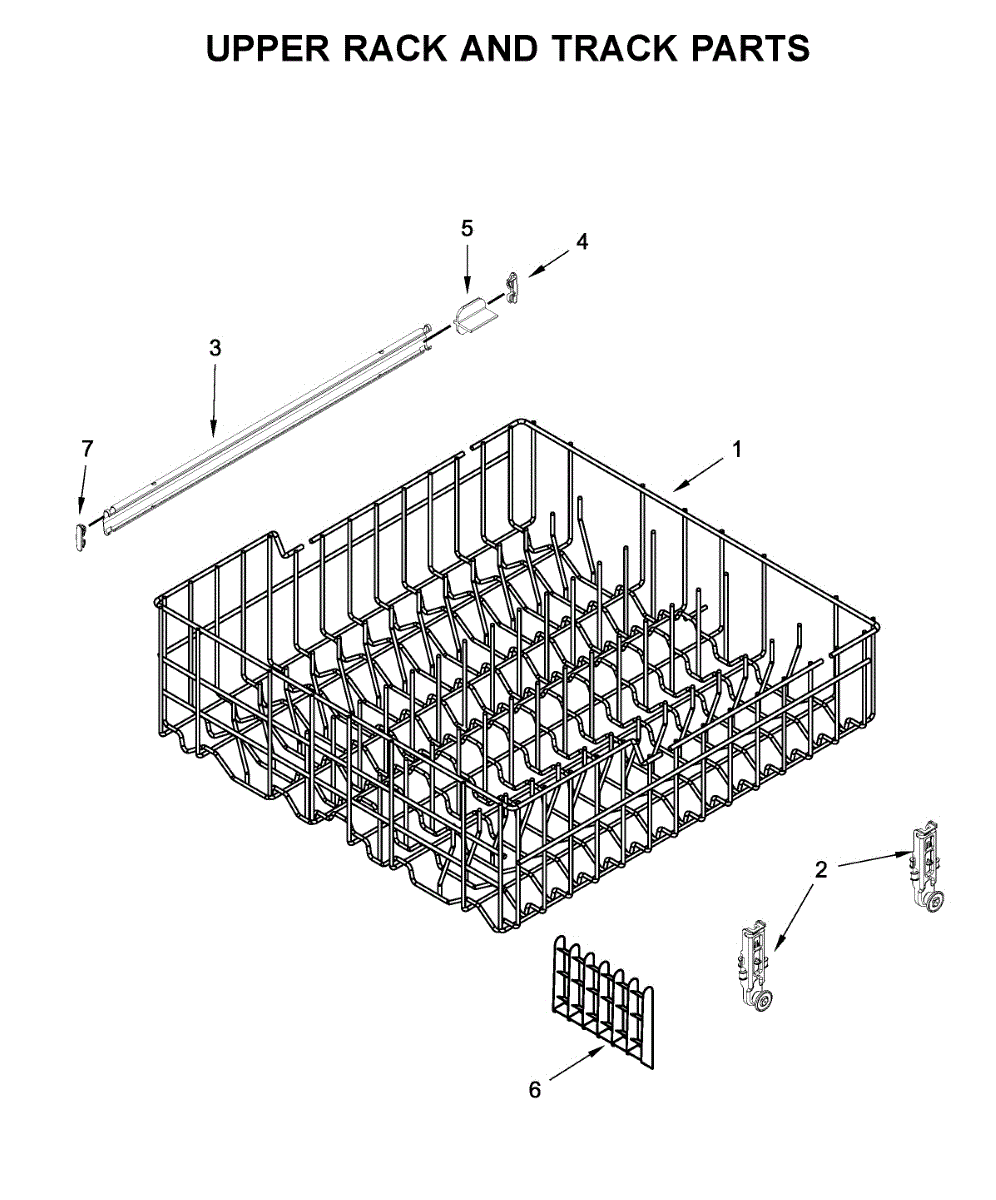 Guides the upper rack smoothly in and out of your dishwasher. Replace if cracked, broken, or wheels no longer roll properly along the track.