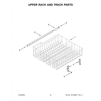 Guides the upper rack smoothly in and out of your dishwasher. Replace if cracked, broken, or wheels no longer roll properly along the track.