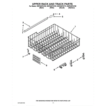 Parts for Whirlpool WDF530PAYB2: 09 - Upper Rack And Track Parts