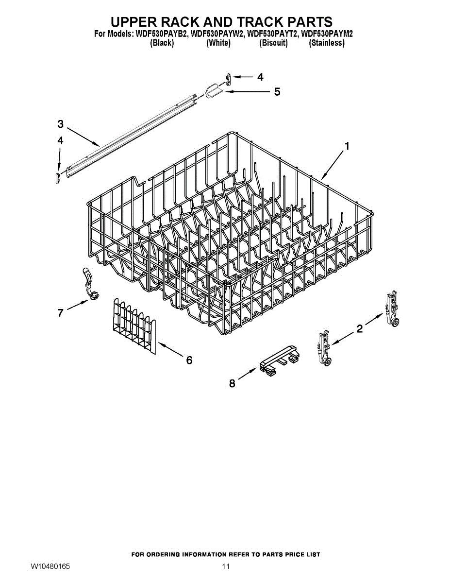 Parts for Whirlpool WDF530PAYW2: 09 - Upper Rack And Track Parts