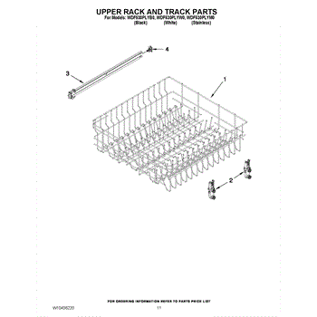Parts for Whirlpool WDF530PLYW0: 09 - Upper Rack And Track Parts