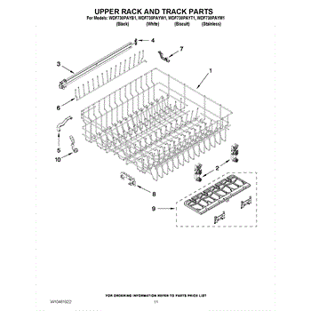 Parts for Whirlpool WDF730PAYB1: 09 - Upper Rack And Track Parts