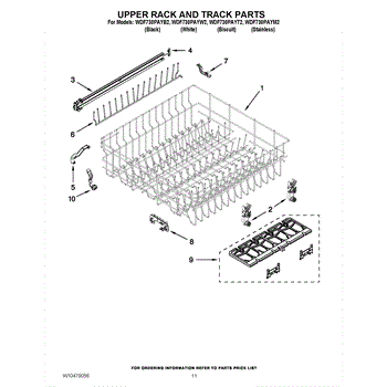 Parts for Whirlpool WDF730PAYB2: 09 - Upper Rack And Track Parts