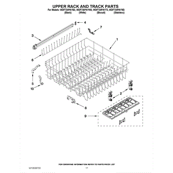 Upper dish rack assembly for dishwashers. Holds glasses, cups, and small items on the top level. Replace if cracked, warped, rusted, or deteriorating.