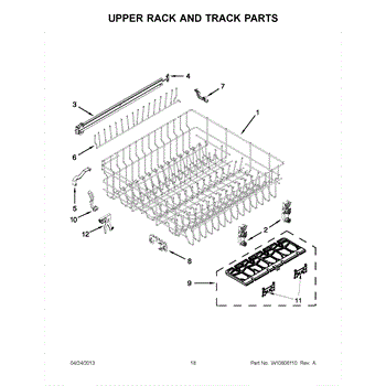 The Upper Dish Rack is an OEM replacement part for Whirlpool dishwashers. Located on the upper level inside the tub, it provides an area for washing smaller dishes, utensils, and glasses.
