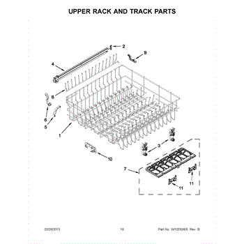 The Upper Dish Rack is an OEM replacement part for Whirlpool dishwashers. Located on the upper level inside the tub, it provides an area for washing smaller dishes, utensils, and glasses.