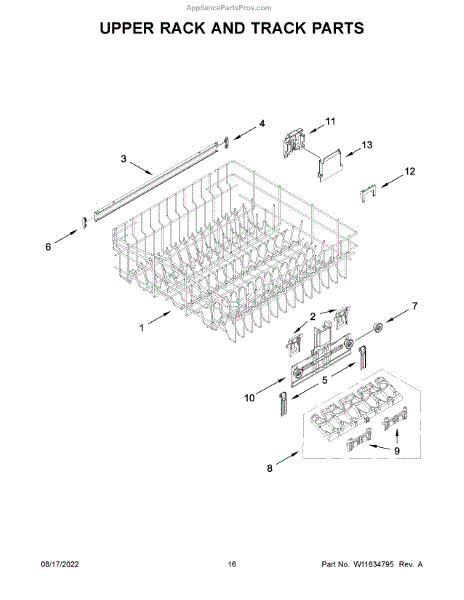 The Upper Dishrack Rail is an OEM replacement part for Whirlpool dishwashers. It guides upper racks in and out for easy access to dishes.