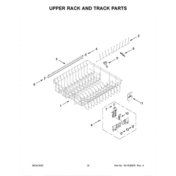 The Upper Dishrack Rail is an OEM replacement part for Whirlpool dishwashers. It guides upper racks in and out for easy access to dishes.