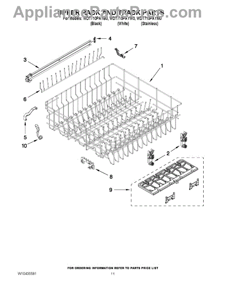 Parts for Whirlpool WDT710PAYM0: 09 - Upper Rack And Track Parts