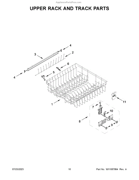The Upper Dishrack Rail is an OEM replacement part for Whirlpool dishwashers. It guides upper racks in and out for easy access to dishes.