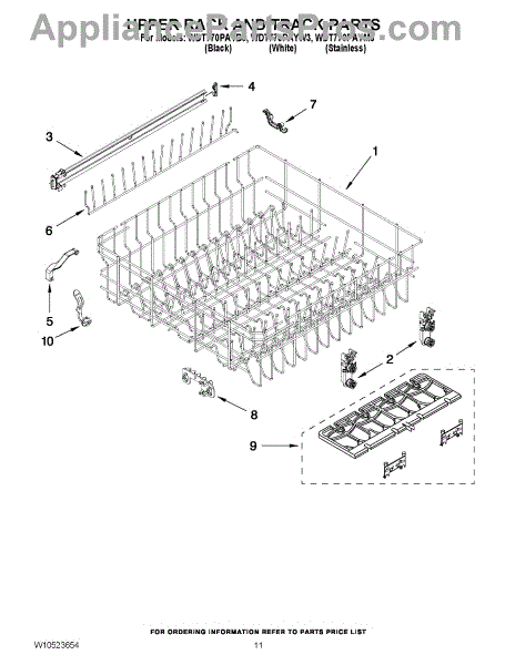 Upper dishrack track for dishwashers. Guides the top rack for smooth sliding. Replace if cracked, warped, or causing rack to fall when pulled out.