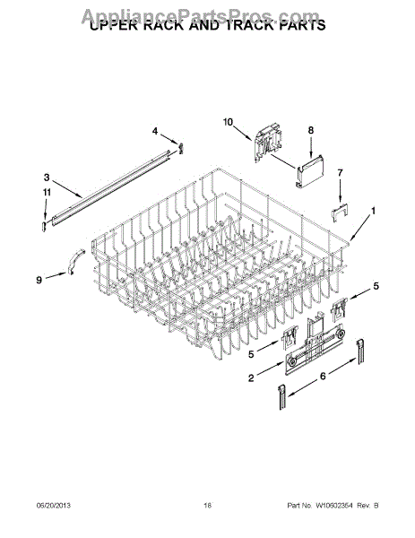 The Upper Dishrack Rail is an OEM replacement part for Whirlpool dishwashers. It guides upper racks in and out for easy access to dishes.