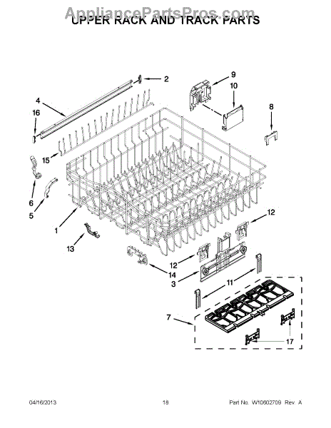The Upper Dishrack Rail is an OEM replacement part for Whirlpool dishwashers. It guides upper racks in and out for easy access to dishes.