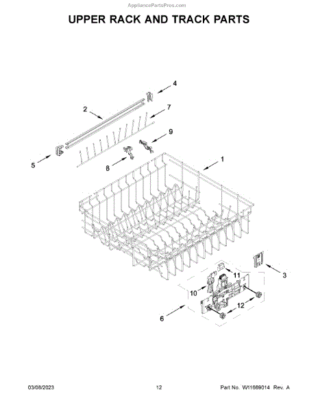 The Rack Adjuster (Left) is an OEM part for Whirlpool dishwashers. It allows for adjustment of the upper dish rack shelves in customized positions.