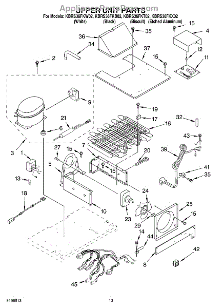 Parts for Kitchenaid KBRS36FKB02: 08 - Upper Unit Parts