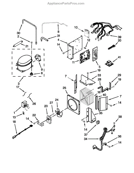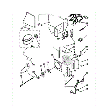 The inverter box assembly is the enclosure that houses and protects the appliance's inverter/control electronics, helping ensure reliable power conversion for variable-speed motor operation and secure mounting of wiring and components. What it does: